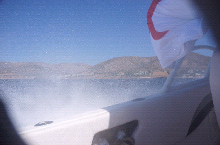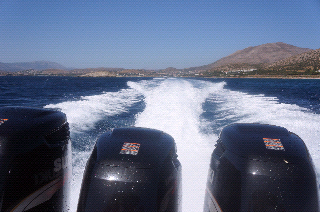 Situação: Costa do Adriático, em reportagem para tv, em lanchas rápidas a caminho de Cape Sonious, segundo o "motorista" a 75mph.